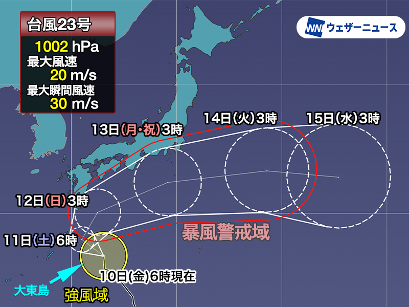 台風23号(ナクリー) 発達続けて沖縄方面へ 三連休は本州でも風雨が強まる可能性