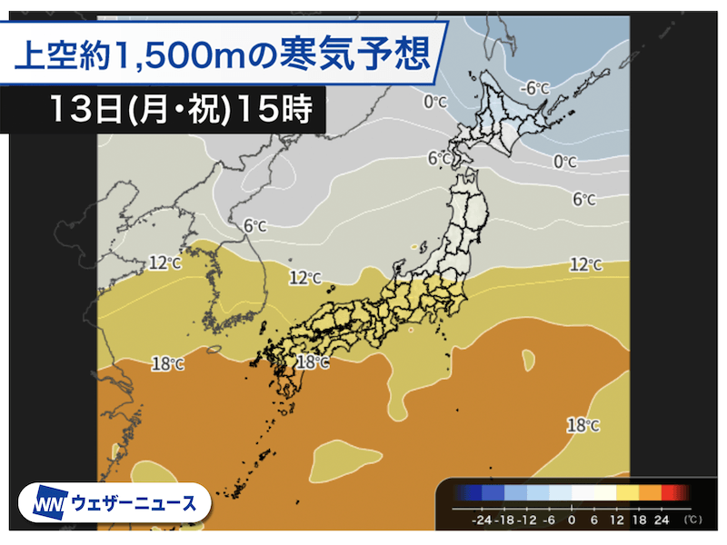平地では、雪が降る目安の寒気(上空約1,500mで−6℃)の流れ込みはまだ先とみられます。ただ、朝晩は冷え込みが強まってきているため、暖房器具の点検など冬支度を始めておくと良さそうです。
