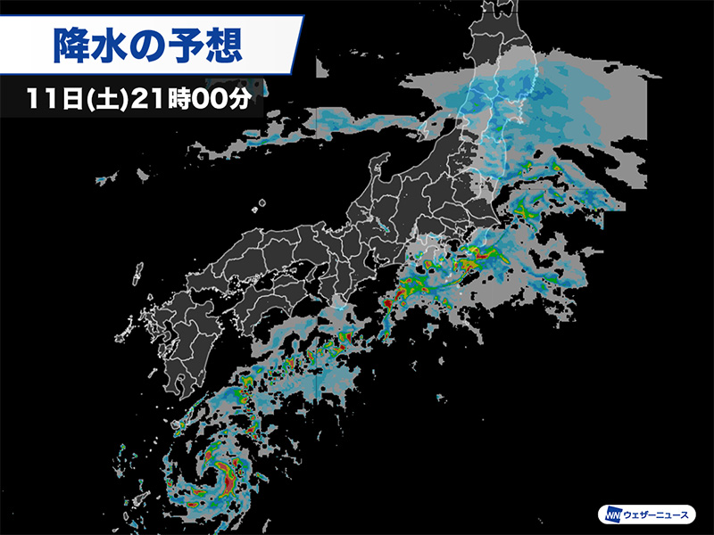 三連休は台風の北東側にも雨雲広がる
