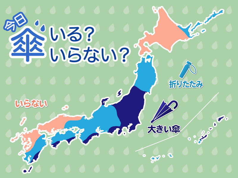 東北北部や東海以西でも雨の降る可能性があります。先島諸島ではモクモクとした雲や黒い雲が接近したら急な雨にご注意ください。