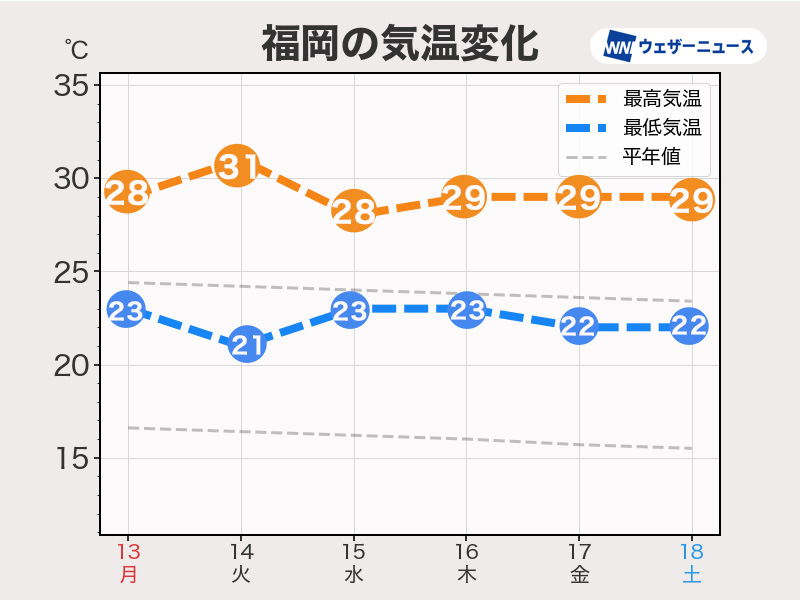 西日本では来週にかけて上空の暖かな空気が流れ込みやすく、気温の高い状態が続きます。本格的に秋らしくなってくるのは10月下旬以降になる見通しです。