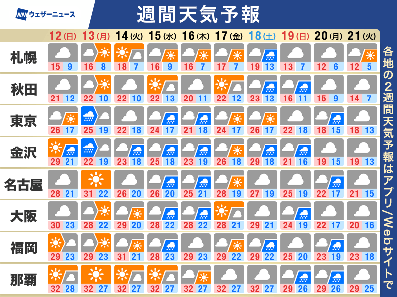 週間天気予報 連休明けは曇りや雨 西日本は季節外れの暑さ続く