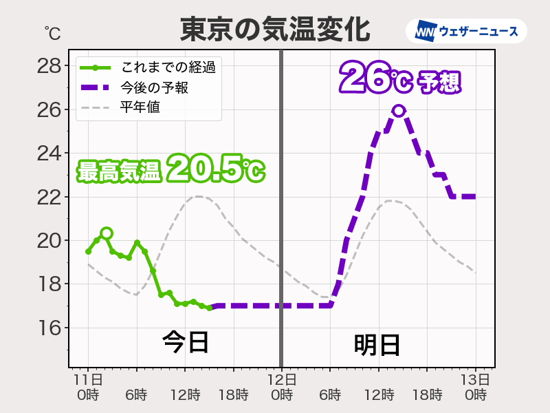 北東からの冷たい風も収まって肌寒さは解消します。昼間は25℃を超えて、比較的過ごしやすい陽気です。