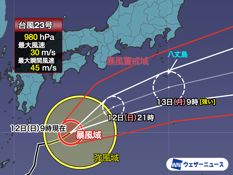 台風23号が発達し暴風域を伴う 強い勢力で伊豆諸島に接近へ