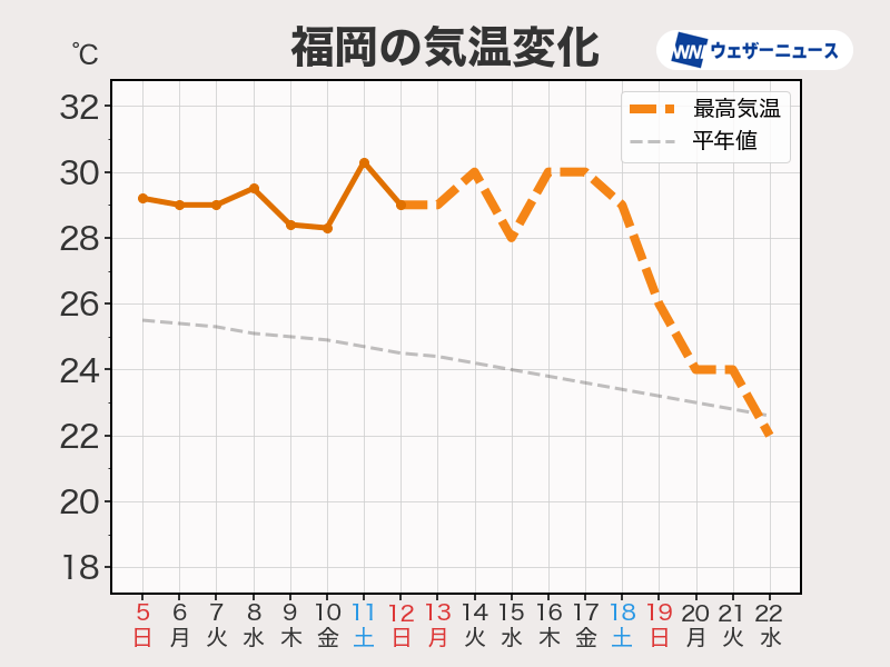 西日本では少なくともあと1週間程度は気温が平年よりも高い状態が続く見通しです。昼間も過ごしやすくなってくるのは来週以降になりそうです。