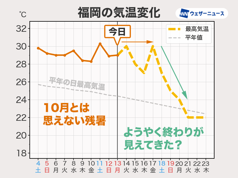 西日本は週末まで残暑 来週は秋感