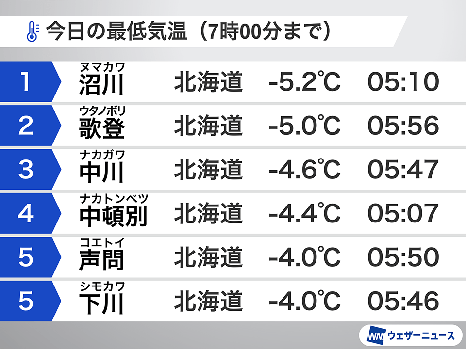 北海道では昨夜からよく晴れていたことで放射冷却現象が効き、熱が宇宙空間に逃げたことで冷え込みが強まりました。