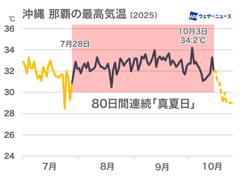 沖縄は10月以降も暑さおさまらず 那覇では7月下旬から80日間連続真夏日に