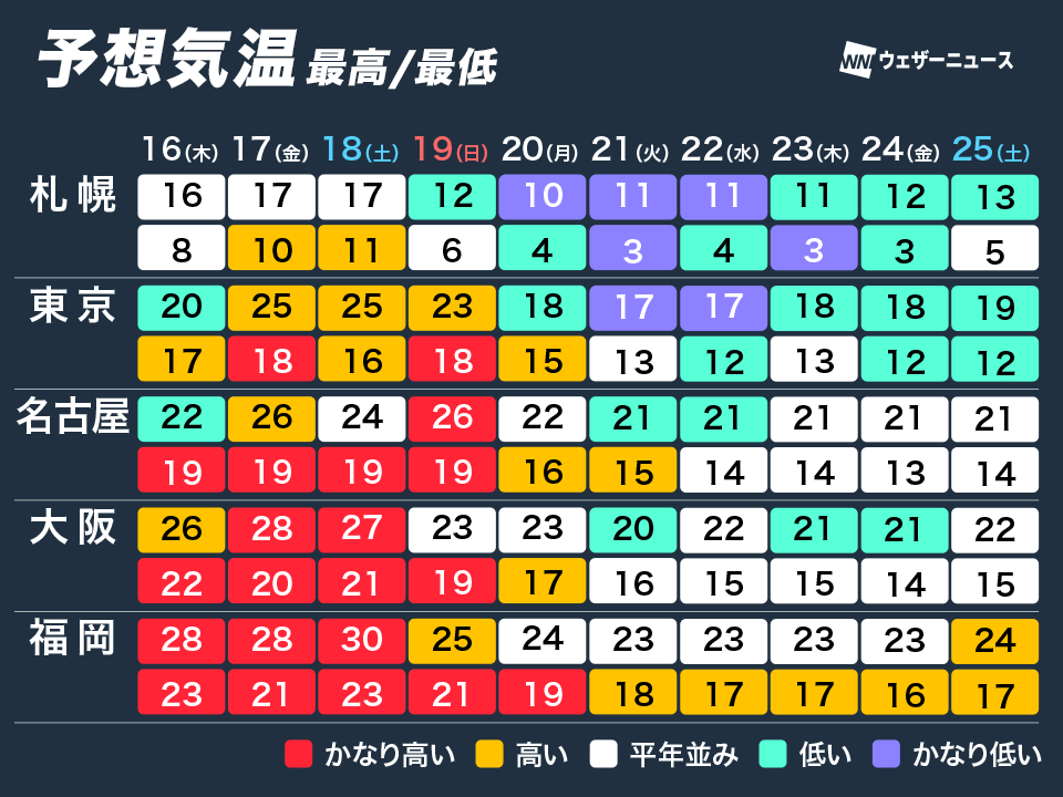 西日本でも強い暖気が南に退く予想で、長引いていた西日本の残暑もようやくピークを越える見通しです。最高気温が20℃台前半の日が多くなり、ようやく平年並みの秋らしさを実感できそうです。