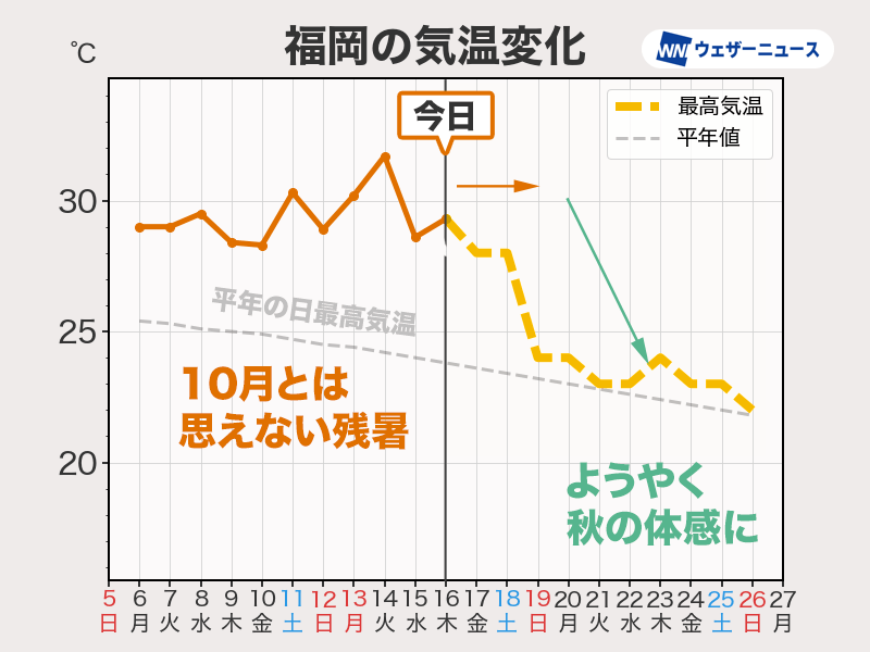 西の残暑は落ち着く 週末以降は各地で気温低下