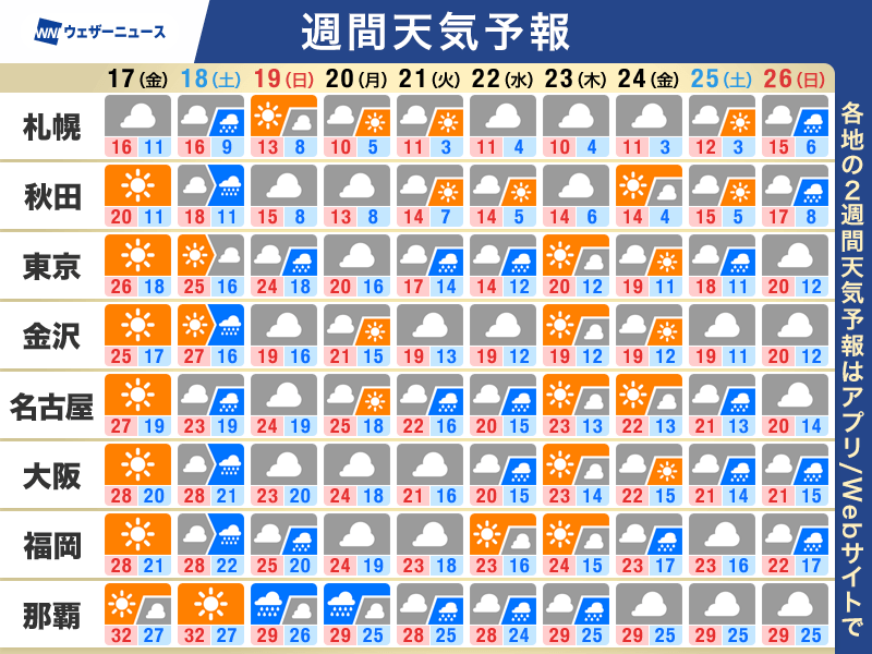 週間天気予報 週末は広範囲で雨 来週は秋深まる