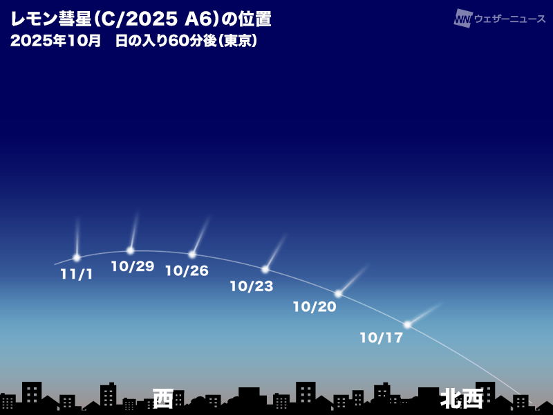 10月下旬はレモン彗星が日没後の空で見頃に 見える方向や時間帯は?