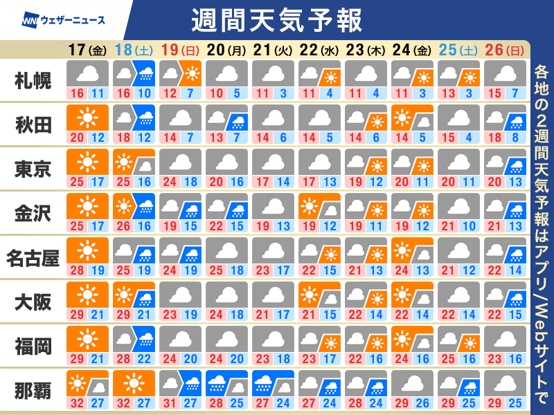 今日・明日〜2週間先までの週間天気予報今日・明日〜2週間先までの週間天気予報