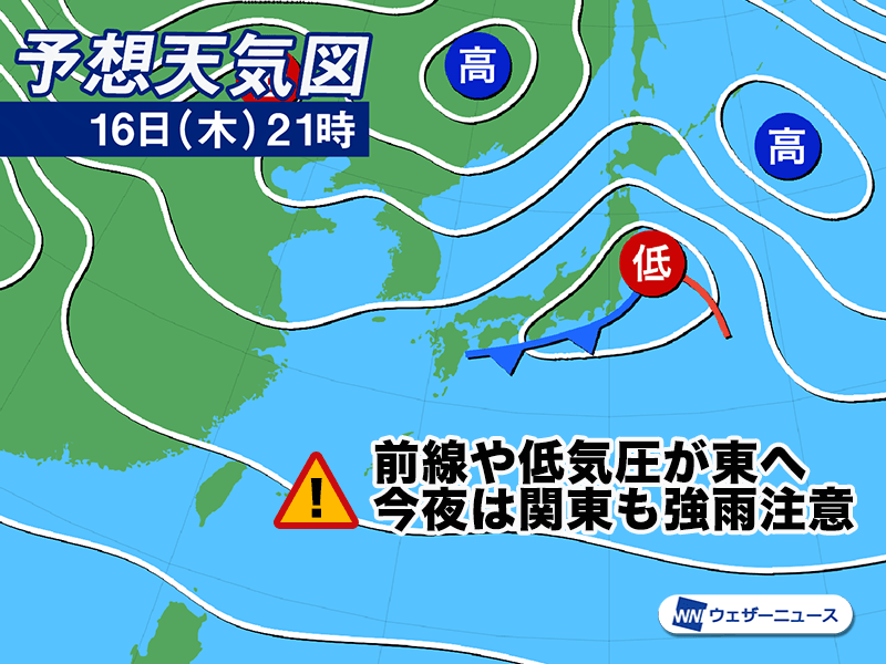 関東も夜遅くにかけて強い雨の降る心配があります。