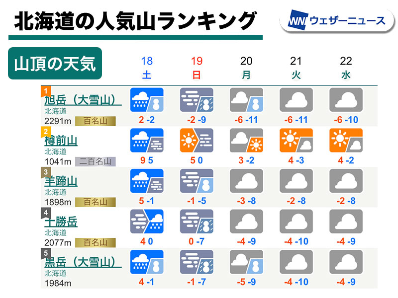 山の天気予報(北海道)