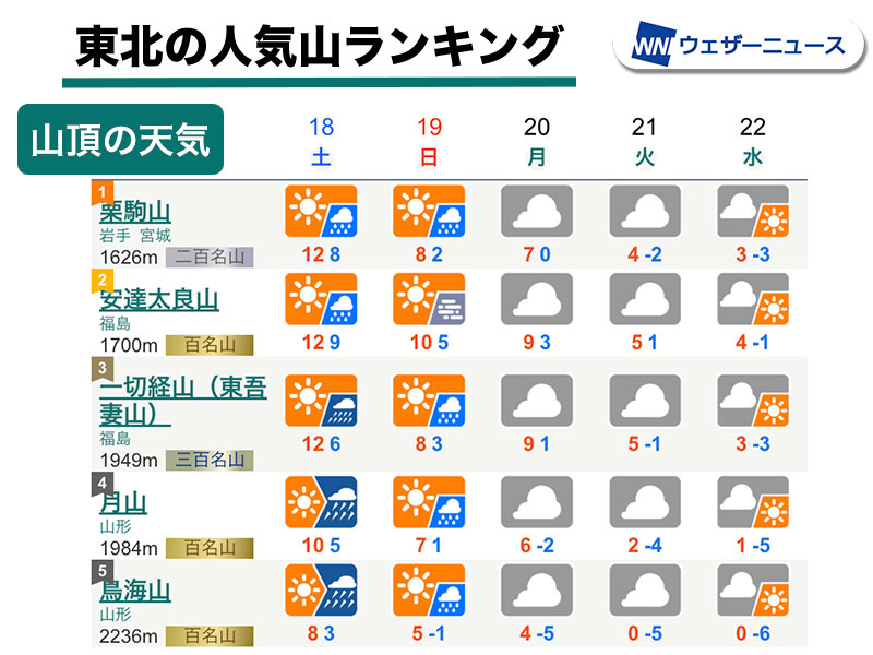 山の天気予報(東北)