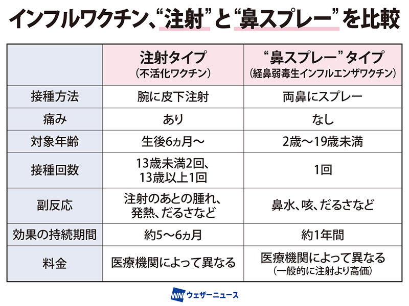 インフルワクチン「注射」「鼻スプレー」どっちがいい? メリット・デメリットは?