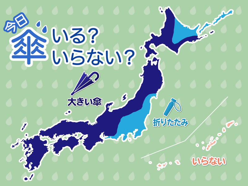 北海道の道東オホーツク海側や東北南部太平洋側は午後は雨の可能性があります。お出かけの際は折りたたみ傘をご用意ください。