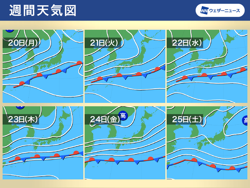 週間天気予報 秋雨前線が本州南岸に停滞 各地で季節が進む1週間