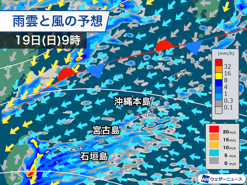 沖縄では19日(日)以降は雨が降りやすくなり、週明けは停滞前線の影響も加わる予想です。最新の気象情報を確認するようにしてください。