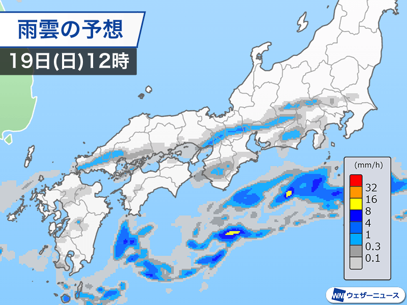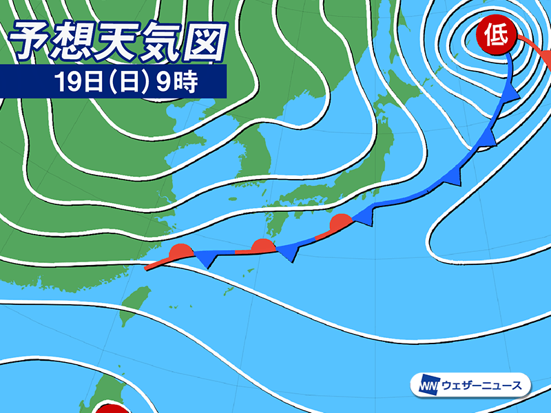 今日18日(土)とは上空の空気が入れ替わり、気温の下がる所が多くなります。関東から近畿では25℃にも届かない予想です。