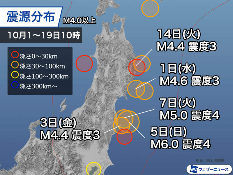 また東北太平洋側で震度3 10月に入り5回目