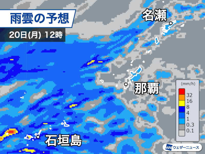 夜にかけては再び石垣島など八重山地方にも活発な雨雲がかかる見通しです。局地的には1時間に30mm以上の激しい雨となり、雷や突風を伴うおそれがあります。低地やアンダーパスなどの通行は避けた方が安心です。