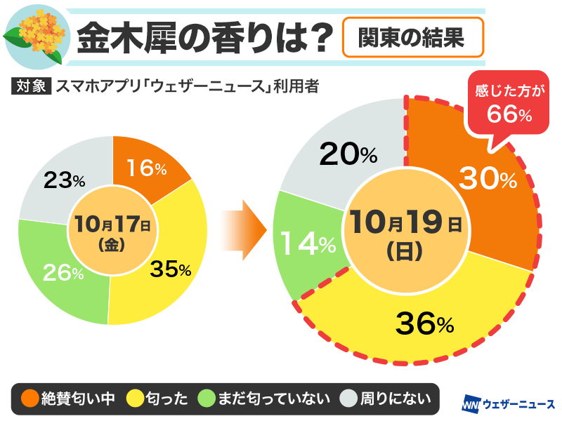 一方で大阪は8%、福岡は6%にとどまり、東日本に比べて西日本では香りを感じている方がかなり少ないことがわかります。