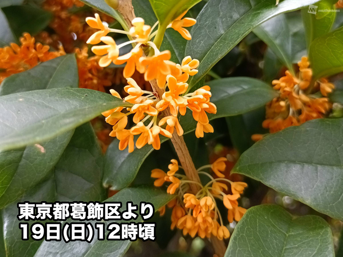 西日本のキンモクセイの開花は月末に向けて進んでいくかもしれません。