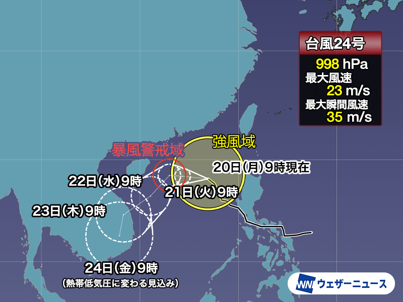 台風24号(フンシェン)は南シナ海で発達 週後半にベトナム上陸か