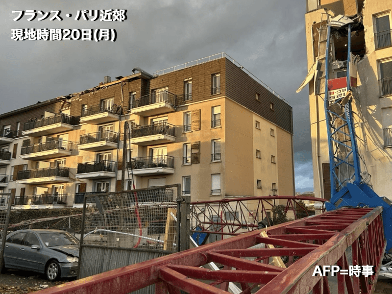 パリの北西に位置するエルモンで突風が発生したとみられ、建設用のクレーンが倒壊し、建物の屋根が剥がれるなどの被害が出ました。フランスの内務大臣は竜巻が発生し、怪我人や亡くなった方がいるとコメントしています。