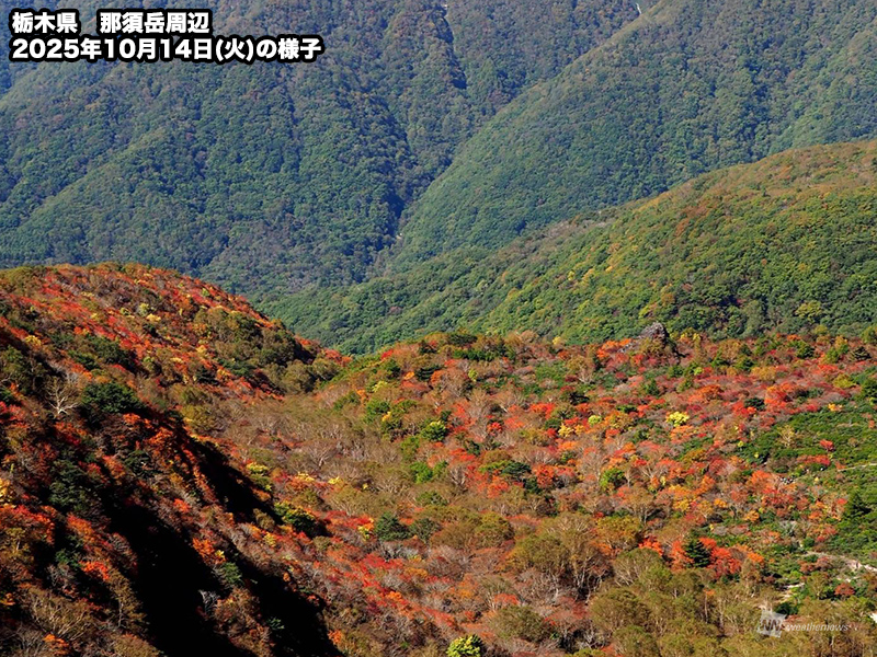 関東北部は山沿いを中心に色づきが進んでいます。栃木県の那須岳はすでに見頃を迎え、ウェザーニュースアプリの利用者からも、鮮やかな紅葉の様子が届きました。那須岳だけでなく、群馬県の日光白根山ロープウェイや茨城県の国営ひたち海浜公園などでも見頃を迎えています。