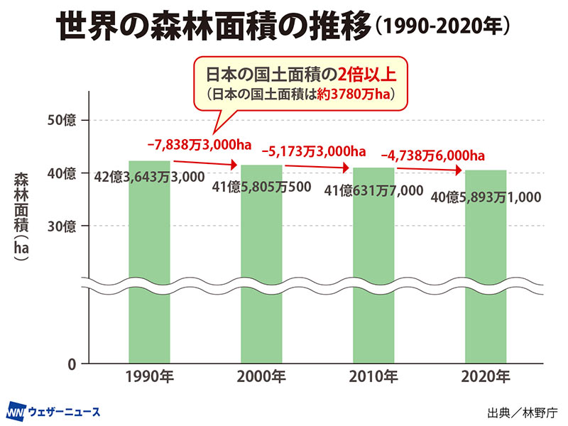 世界の森林面積は年々、さらにいえば、日々減少しています。日本の森林が減少していないからといって、安心できないことは明白です。