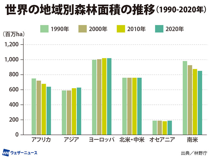 しかし、世界全体で見ると、正味でまだ森林減少が続いている状態です。