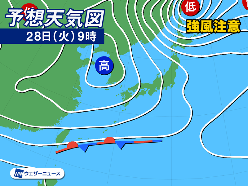 高気圧が張り出す29日(水)以降は徐々に荒天のピークを越える見込みです。