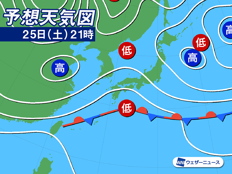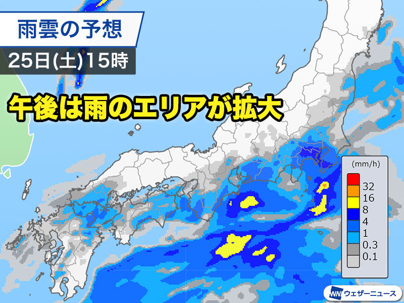 今日25日(土) 西日本〜東日本の広範囲で雨