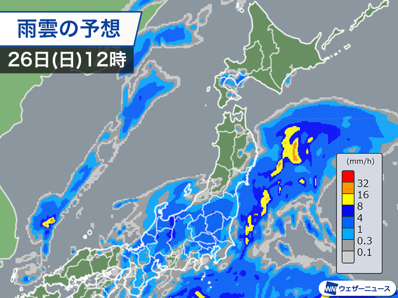 明日26日(日) 北日本や東日本の太平洋側で強雨に注意