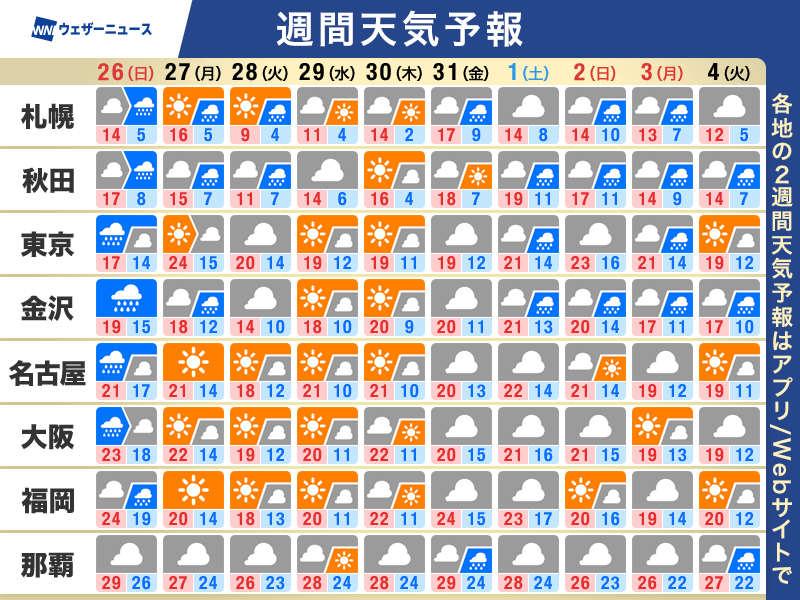 週間天気予報 週初めは強い寒気が南下 北海道では荒天注意