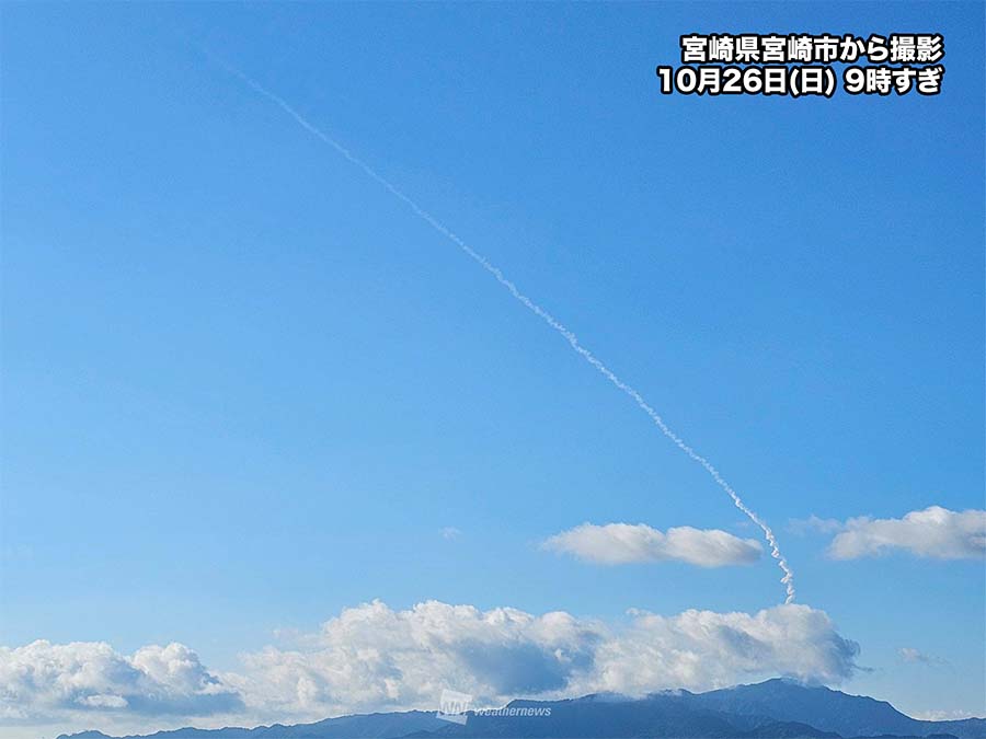 鹿児島県内・宮崎県内の各地から打上げの様子が確認でき、ウェザーニュースアプリにも、青空を背景に白い航跡を引いて上昇するH3ロケットの様子がたくさん投稿されました。