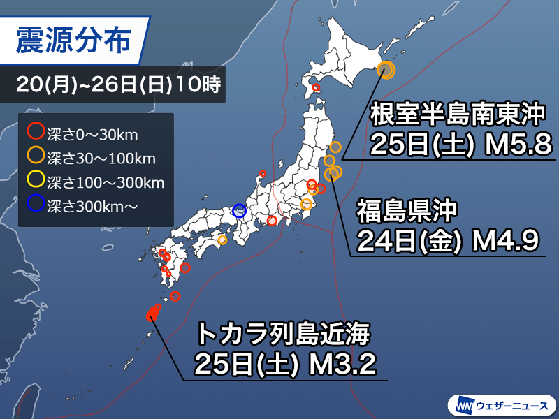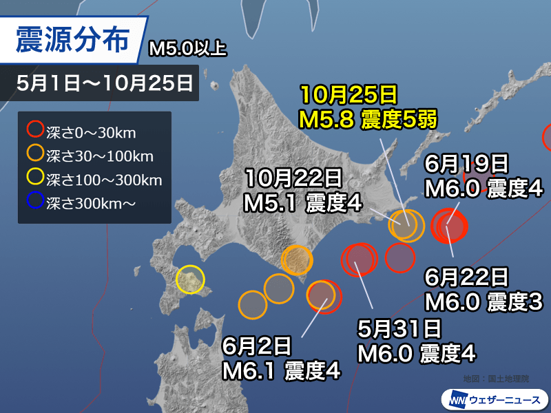 今年は北海道太平洋側でマグニチュード6前後の地震がしばしば発生しています。根室半島南東沖では6月22日と19日にマグニチュード6.0、6月2日には十勝沖でマグニチュード6.1、5月31日には釧路沖でマグニチュード6.0とマグニチュード6クラスが相次ぎました。