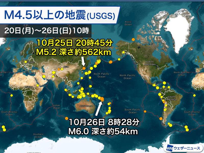 ※日本国内の震源・震度の情報は特に記載が無ければ気象庁より。海外の震源情報は特に記載が無ければアメリカ地質調査所(USGS)より。発表機関により震源情報に差が生じることがあります。