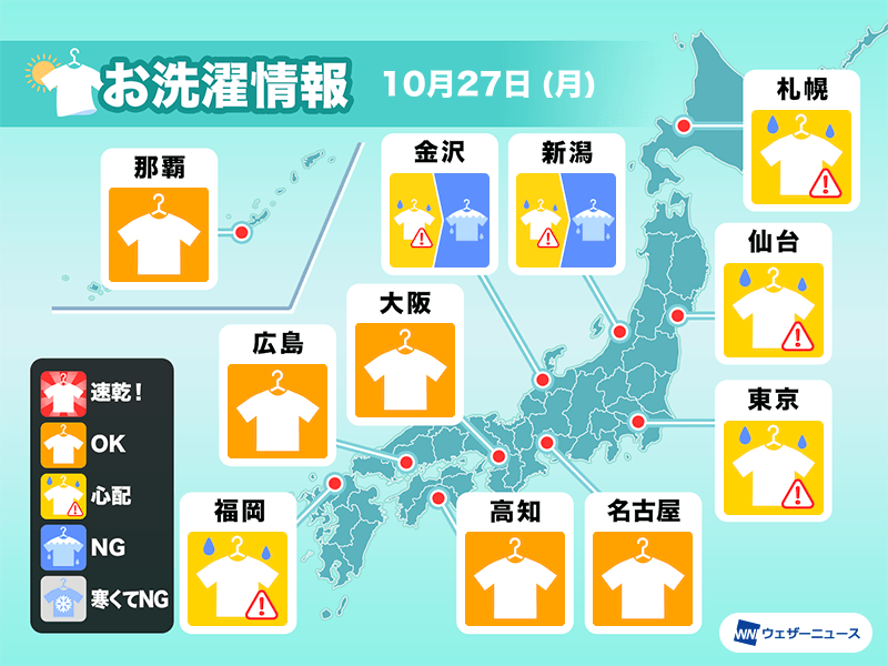 明日10月27日(月)の天気予報