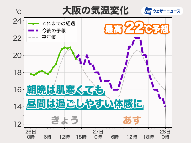 朝晩は肌寒くても昼間は過ごしやすい体感になります。