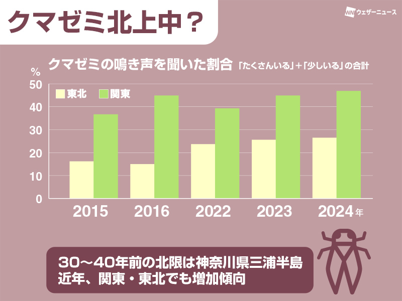 クマゼミの生息域が北上