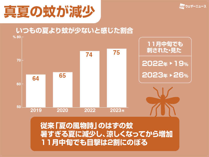 真夏に見られる蚊が減少