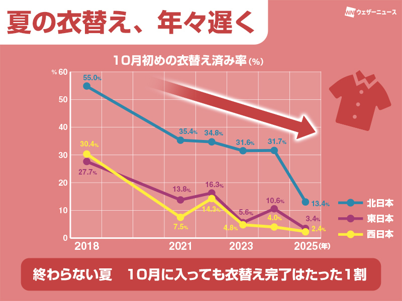 夏から秋への衣替えが遅れる