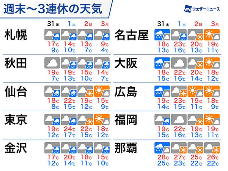 引き続き日毎の気温差や朝晩と日中の寒暖差が大きいため、服装選びにも注意が必要です。
