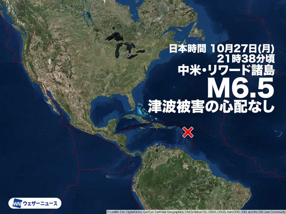 中米 リワード諸島でM6.5の地震 津波被害の心配なし
