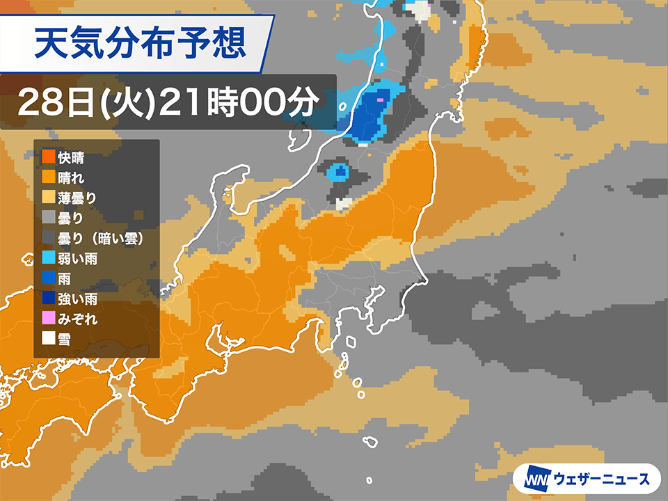 関東や東海、西日本の各地では晴れる所が多くなります。ただ、関東では沖合で発生した雲が広がってくる可能性があるためにわか雨にご注意ください。