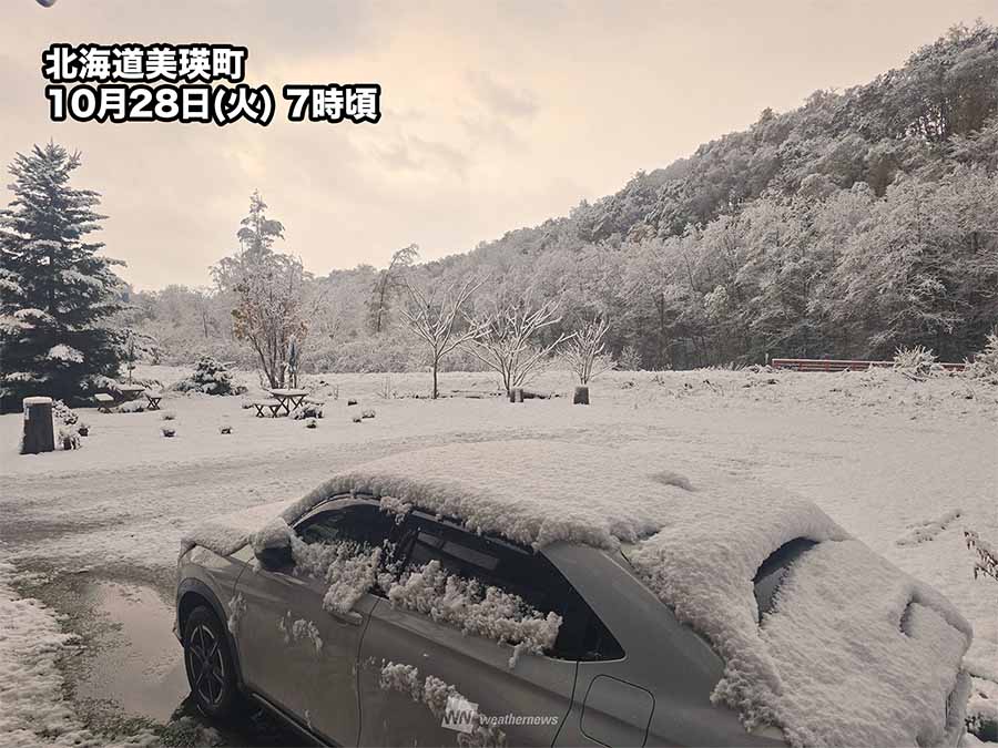 降水があれば平地でも雪になる目安とされる上空約1,500mで−6℃以下の寒気が南下して、北海道の広範囲を覆っています。この影響で昨夜から雨が雪に変わってきたところが多く、先週23日(木)に初雪が観測されていた札幌でも一時、雪の報告が増えました(ウェザーニュースアプリ調べ)。